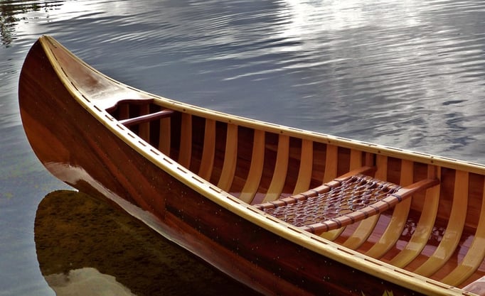 C’est le canoë des premiers trappeurs, souvent piloté par des indiens du bord du Fleuve St Laurent; fabriqué selon les formes des canots amérindiens avec des pointes relevées, tendu comme un arc,