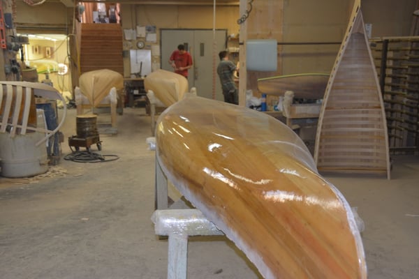 Dans les mêmes années, Alain Rhéaume oriente ses compétences d'ébéniste vers l'art de la construction des canots en cèdre; au fil du temps, la manufacture s'est développée à