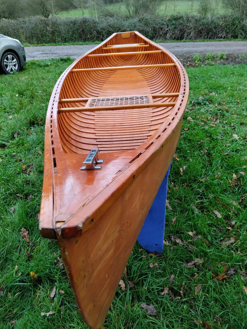 Canoë en cèdre fabriqué chez Alain Rhéaume à la manufacture des canots à Saint-Tite (QC) vers 2005.